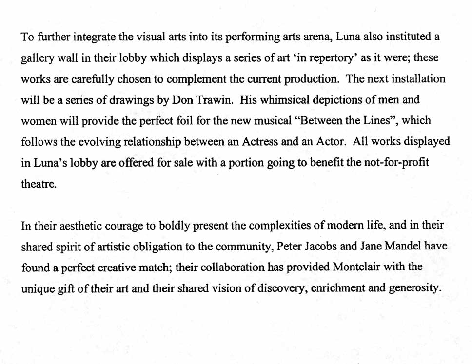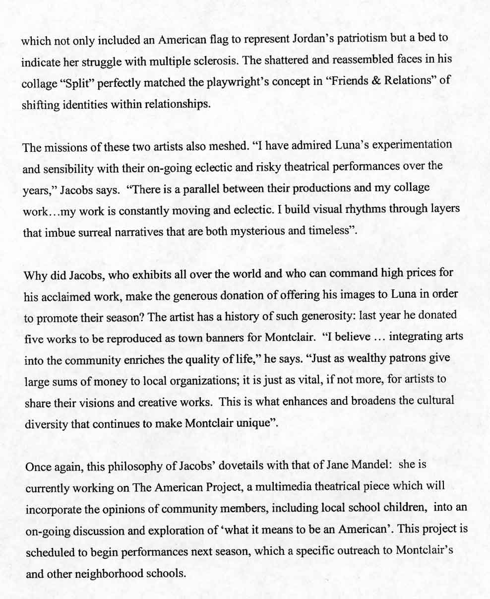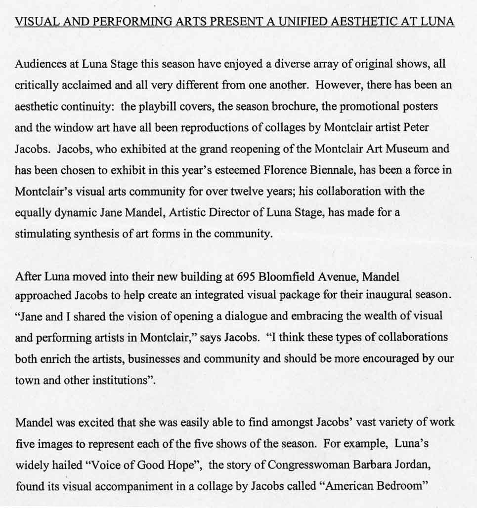 Esaay written by Penny Paul , Director of PR and Marketing for Luna Stage, Montclair, NJ